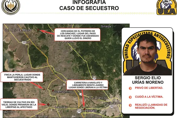 Es el segundo caso de manera formal en el que Urías Moreno, de 30 años de edad, es acusado de secuestro agravado al haber realizado llamadas pidiendo dinero a cambio de la liberar a una persona secuestrada, ahora en el municipio de Navolato.
