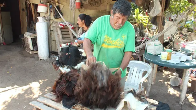 Con piel de venado, cochi jabalí y principalmente de chivo, Eleazar Pacheco, mejor conocido como “El Chon”, confecciona las máscaras que cientos de judíos utilizan en las fiestas de Cuaresma.