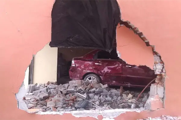 Los Mochis, Sin.- Un joven que conducía un automóvil se estrelló contra una vivienda y provocó cuantiosos daños, al mediodía de este lunes, en el fraccionamiento Santa Teresa, al sur de la ciudad.