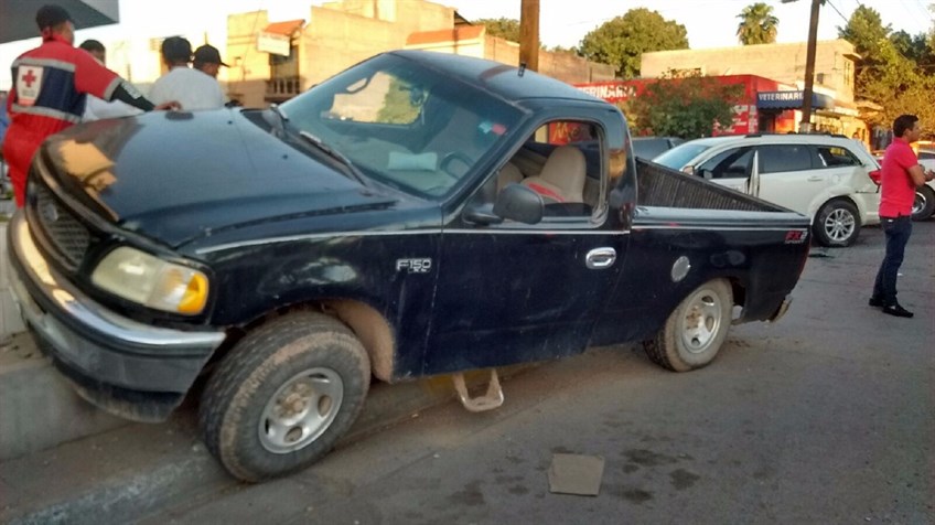 Los Mochis, Sin.- Cuatro personas, entre ellos dos menores de edad, resultaron con varias lesiones en el cuerpo al registrarse un choque entre dos camionetas en el cruce de las calles Benito Juárez y Emiliano Zapata, en el centro de la ciudad.