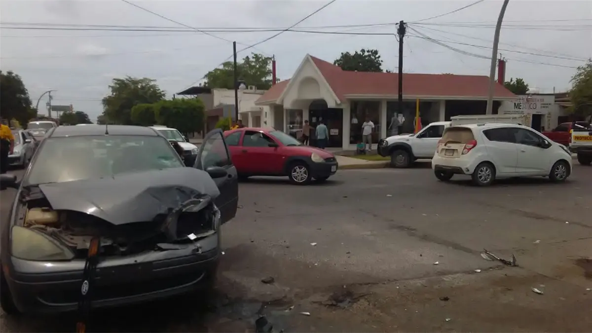 Los Mochis, Sin.- Dos niños y una mujer resultaron con golpes tras un aparatoso choque en la colonia Centro de Los Mochis.