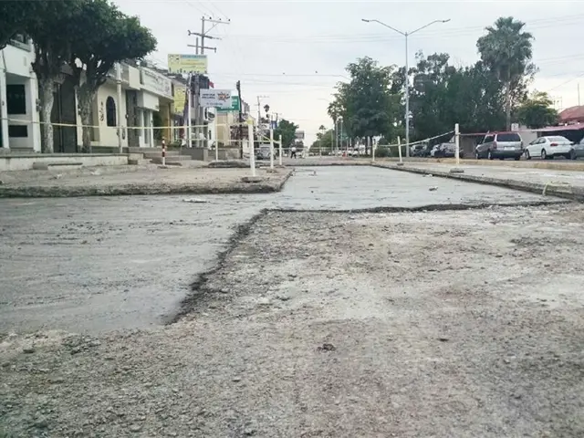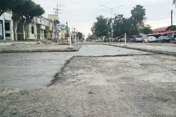 Los Mochis, Sin.- La Dirección de Obras Públicas Municipales pide paciencia a la ciudadanía ante los bloqueos en el bulevar Antonio Rosales donde se cambian lozas de concreto y corre un "canal" de agua por la construcción de la Plaza Sendero.