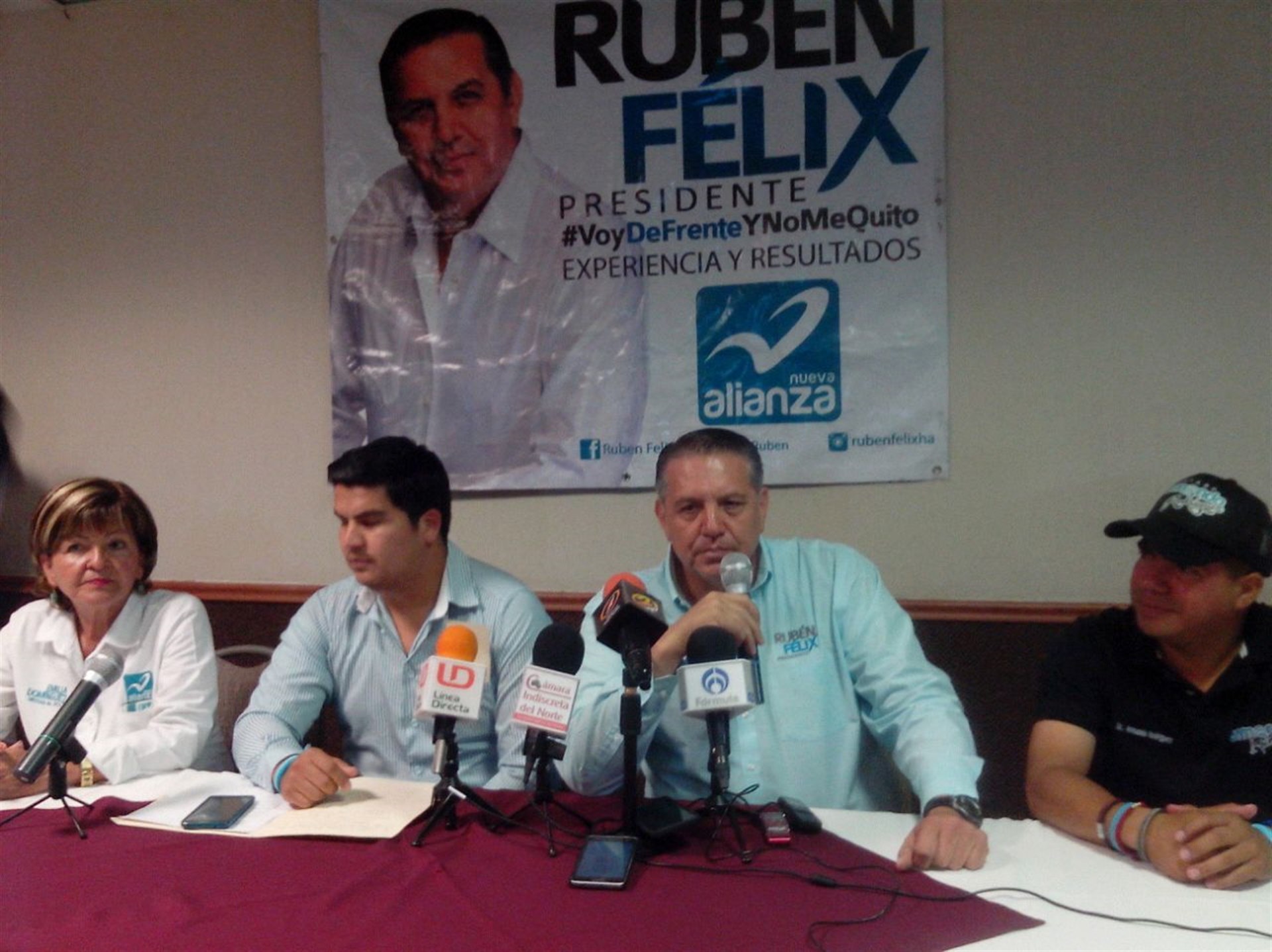 En la conferencia de prensa también habló Armando Rodríguez, candidato a la diputación del distrito 5, quien señaló que continúa la vandalización a la publicidad del partido, y mediante fotografías reveló que en el ejido Flores Magón y en el ejido 20 de Noviembre se dañaron las imágenes donde aparecen él y Rubén Félix. Agregó que este tipo de actos “llevan un mensaje implícito”, también acusó a las autoridades municipales de estar acosando y hostigando al personal que los apoya en la campaña.