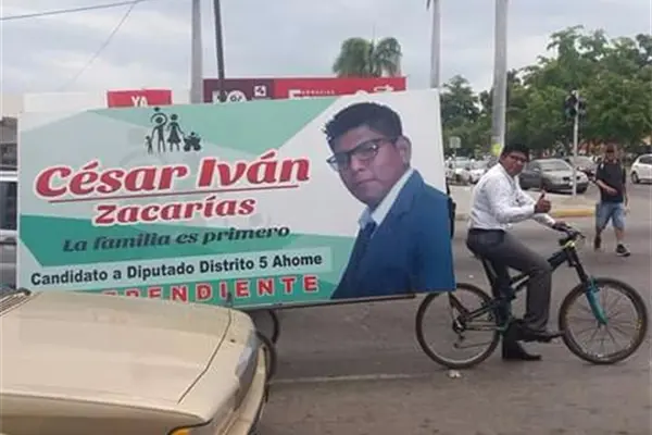 Muchos creen que es una estrategia de campaña andar en bicicleta por toda la ciudad de Los Mochis y con la publicidad al revés, sin embargo, lo que la gente desconoce es que esa bicicleta es su único medio de transporte y la publicidad volteada significa el modo como César Iván Zacarías, candidato independiente por el quinto distrito, percibe la situación política en el país.