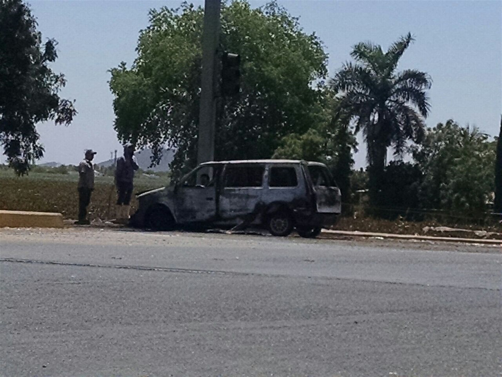 Se incendia vagoneta por la Mochis-Ahome
