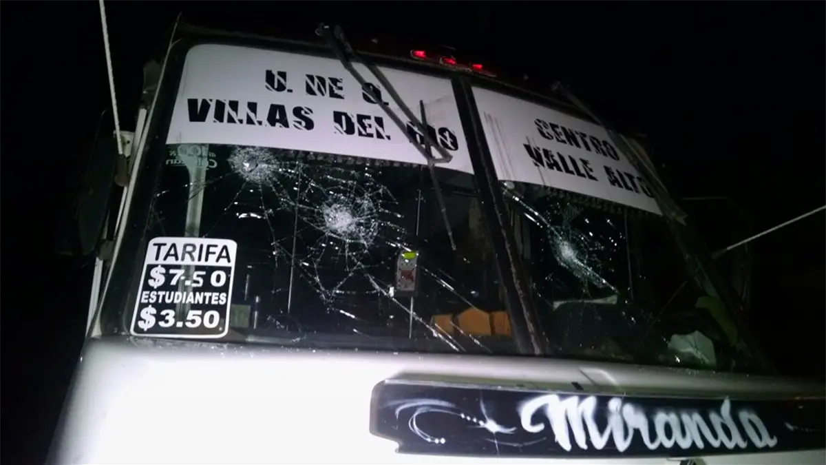 Un grupo de personas que portaban armas largas vandalizaron algunas unidades del transporte público urbano de la ciudad.