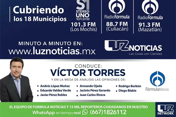 Los 18 municipios de Sinaloa estarán enlazados a través del 101.3 de FM, en Los Mochis; 88.7 FM, en Culiacán; 91.3 FM, de Mazatlán, y minuto a minuto en www.luznoticias.mx.