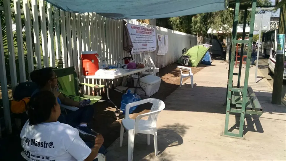 Culiacán, Sin.- Tras recibir el pago de 3 de las 6 quincenas que han dejado de percibir luego de ser notificados de su despido del servicio magisterial por no aplicar el examen de permanencia obligado por la Secretaría de Educación Pública, los maestros de educación básica que estaban en plantón afuera de las instalaciones de la SEpyC decidieron retirarse.