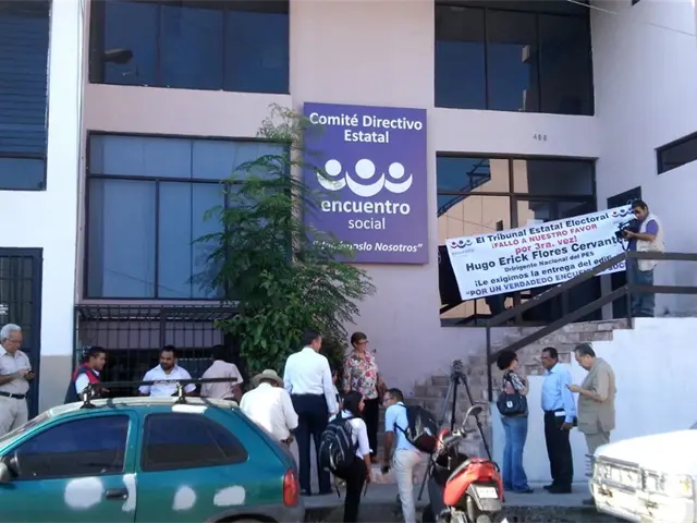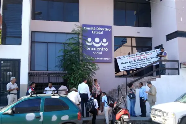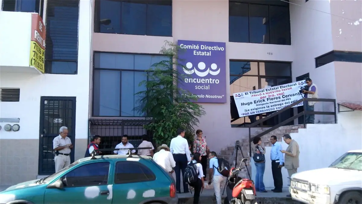 "El Tribunal Estatal Electoral falló a nuestro favor por tercera vez... Hugo Erick Flores Cervantes, dirigente nacional del PES. Le exigimos la entrega del edificio! " por una verdadero encuentro social", se leía en una manta que colocaron en la puerta del partido, la cual permanece cerrada descripción el 8 de agosto cuando el grupo político que encabeza Juan Ramón Félix, se enfrentó con el grupo encabezado por Patricia Salomé Escobar Flores y Héctor Valle Plascencia.