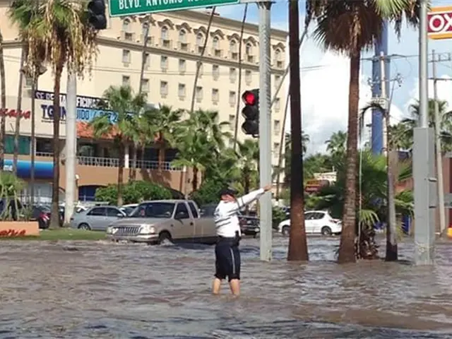 Los Mochis, Sin.- A través de las redes sociales se dieron a conocer varias fotografías de un agente de Tránsito con el agua a las rodillas ayudando a los automovilistas que se quedaron tirados por las fuertes lluvias registradas en Los Mochis hace una semana.