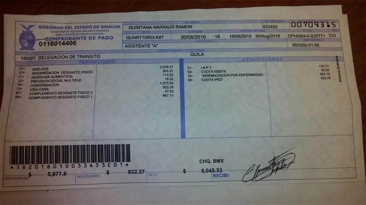 De acuerdo con imágenes de recibos de nómina que se hicieron llegar a esta redacción, a través de un reportero ciudadano, se trata de Ramón Quintana Naranjo, quien aparece como "Asistente A" de esta dependencia en dicha localidad.
