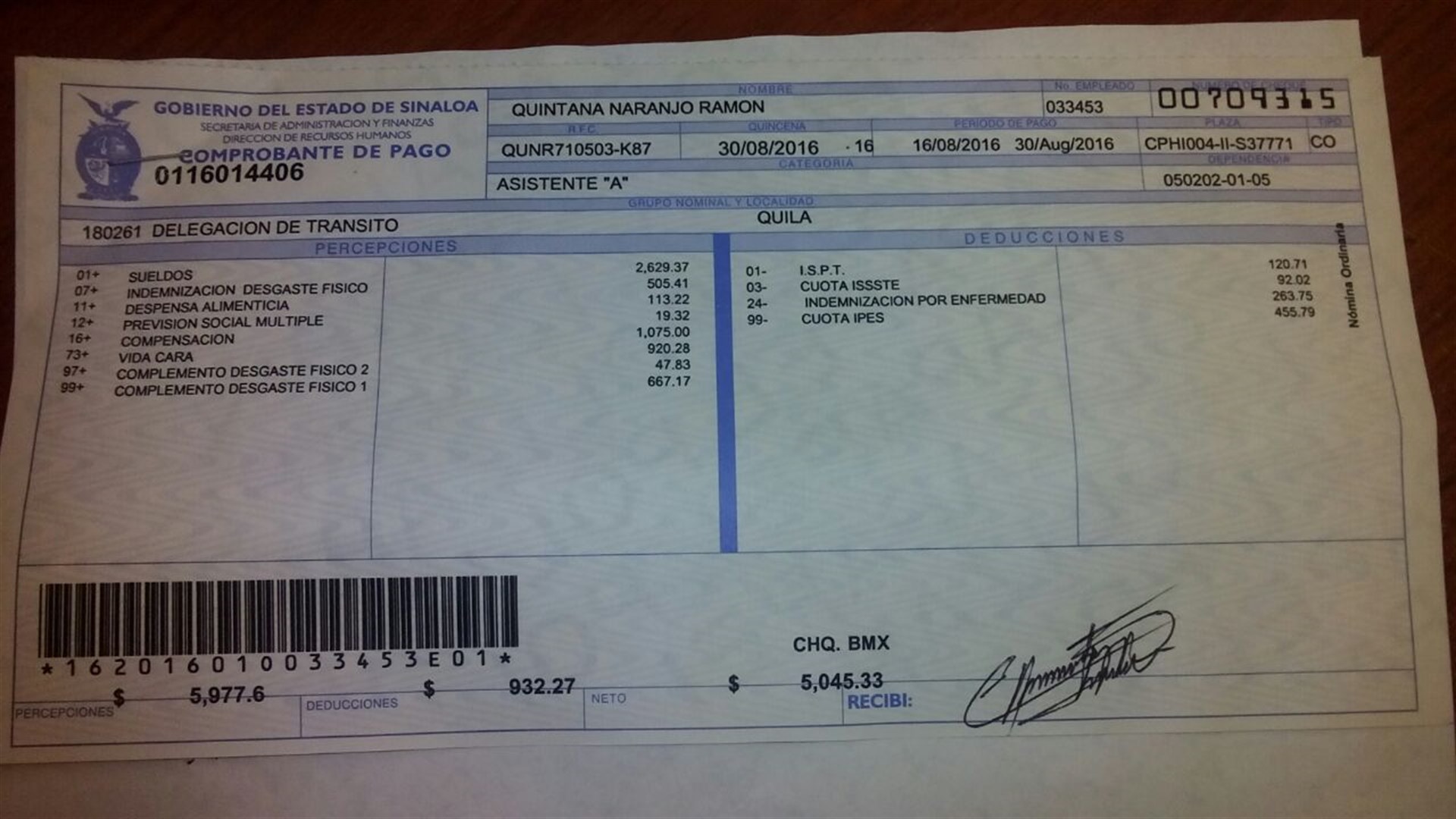 De acuerdo con imágenes de recibos de nómina que se hicieron llegar a esta redacción, a través de un reportero ciudadano, se trata de Ramón Quintana Naranjo, quien aparece como Asistente A de esta dependencia en dicha localidad.