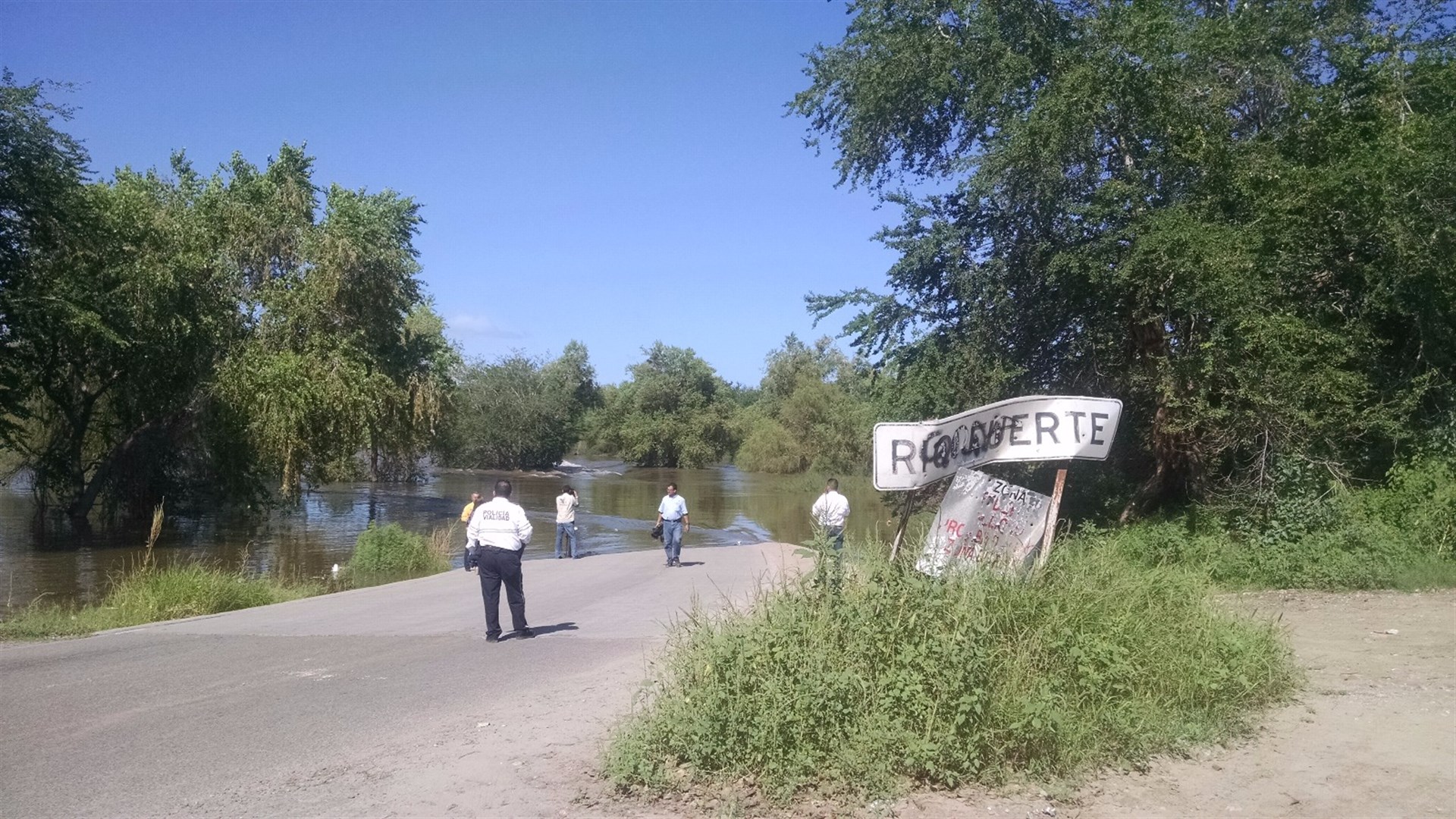 El síndico, José Alfredo García Padilla, señaló que el puente vado de San José de Ahome aún se encuentra sobrepasado por el agua y se observa que el agua está superando los muros de contención que se hicieron en algunos lugares.