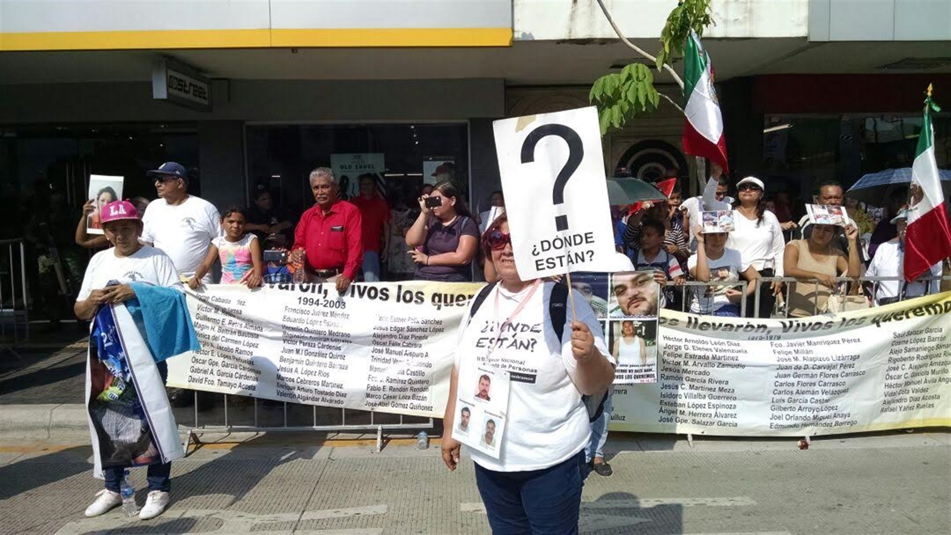 Rodeado de familiares de personas desaparecidas se apostó frente a Palacio Municipal, en exigencia de que se agilicen las investigaciones, al ver las pancartas con fotografías así como bocinas, miembros del Ejército intervinieron intentando frenar la manifestación.