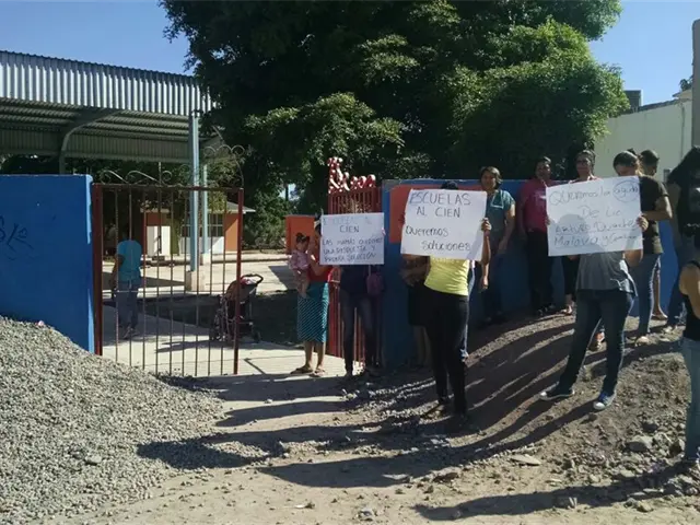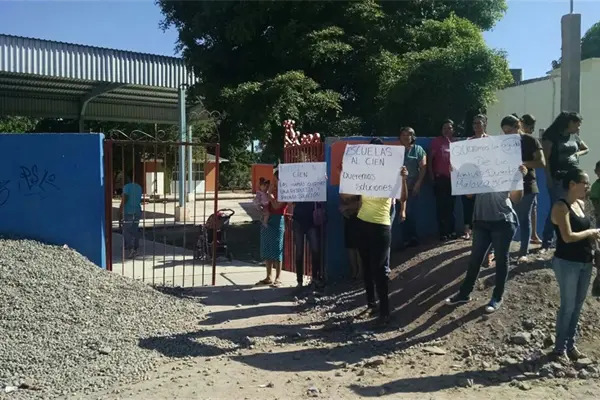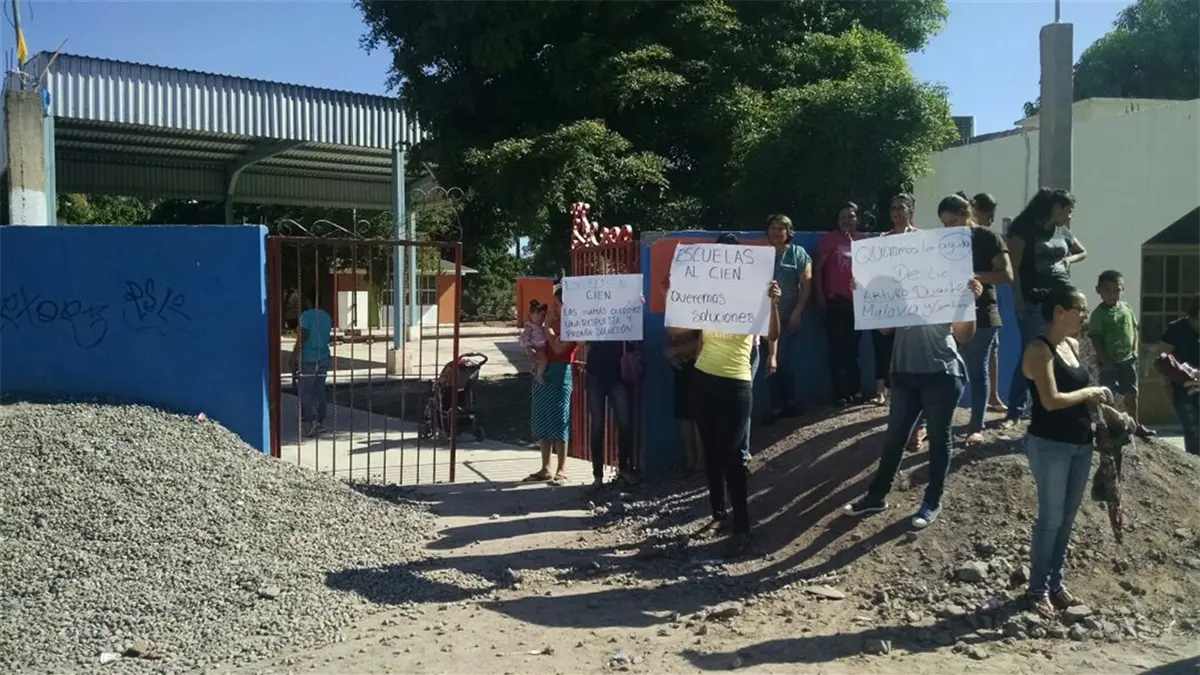Los Mochis, Sin.- Un grupo de madres de familia se manifestaron en el jardín de niños Juan Jacobo Rosseau del ejido Bagojo Colectivo en exigencia de la reanudación de las obras de construcción y remodelación del plantel que resultó beneficiado con el programa federal Escuelas al cien.