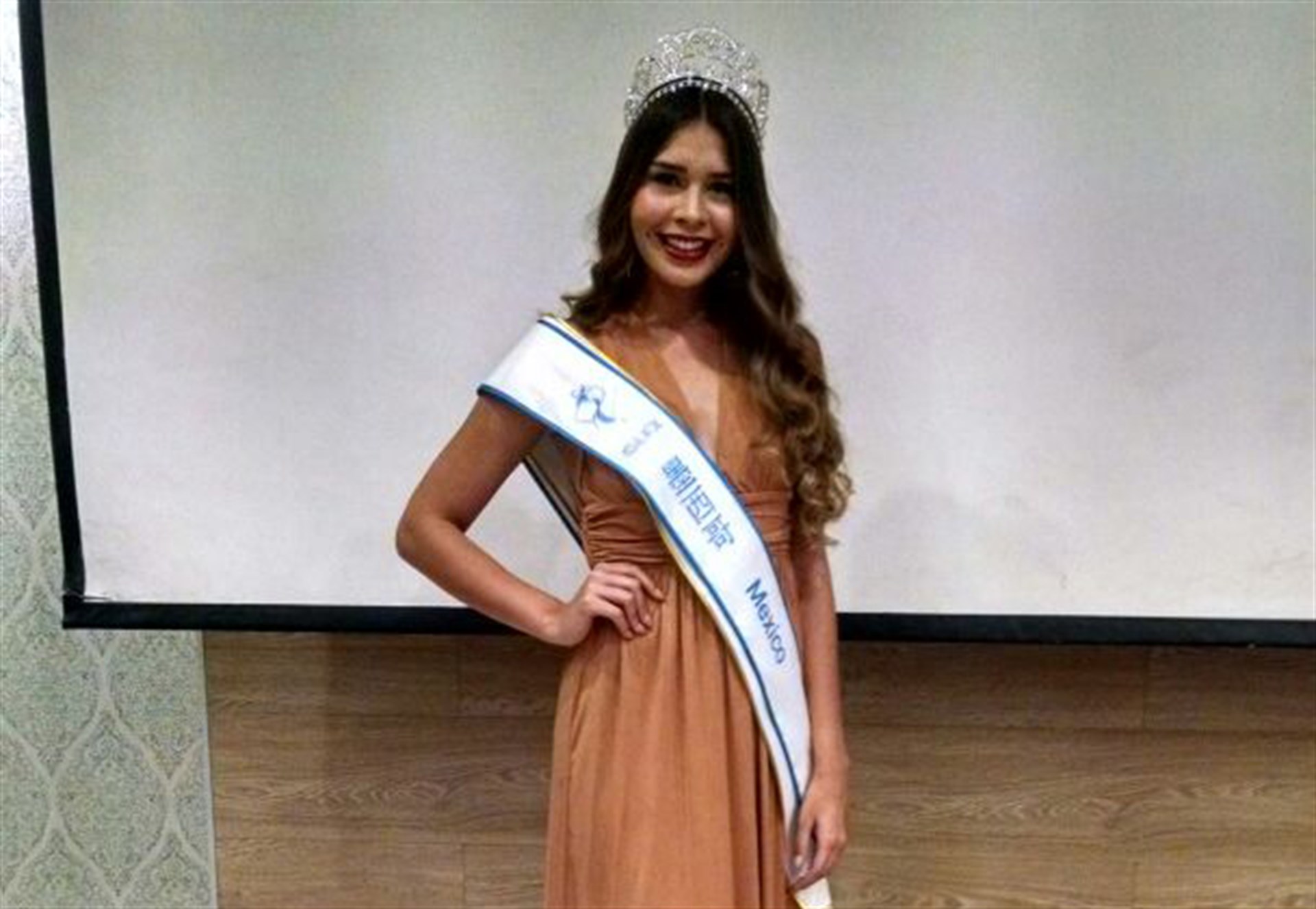 Los Mochis, Sin.- Estudiante mochitense representó a México en un certamen de belleza el pasado 26 de septiembre en China y logró la banda de mejor vestido de noche.