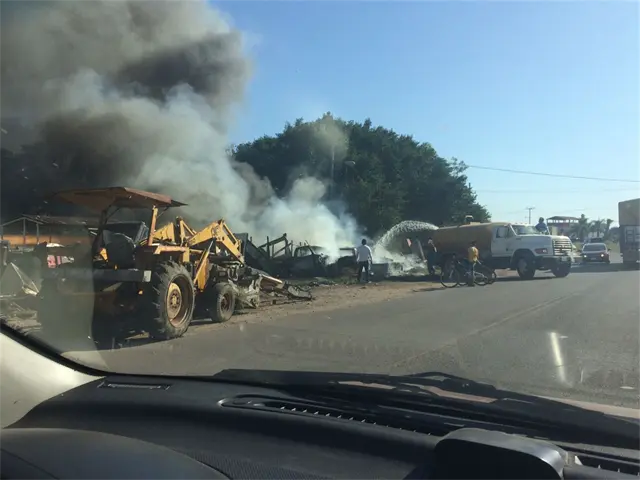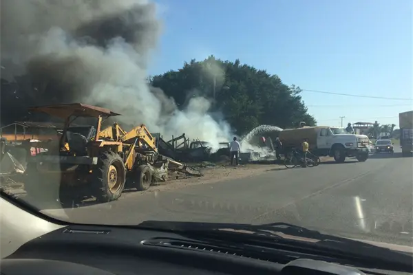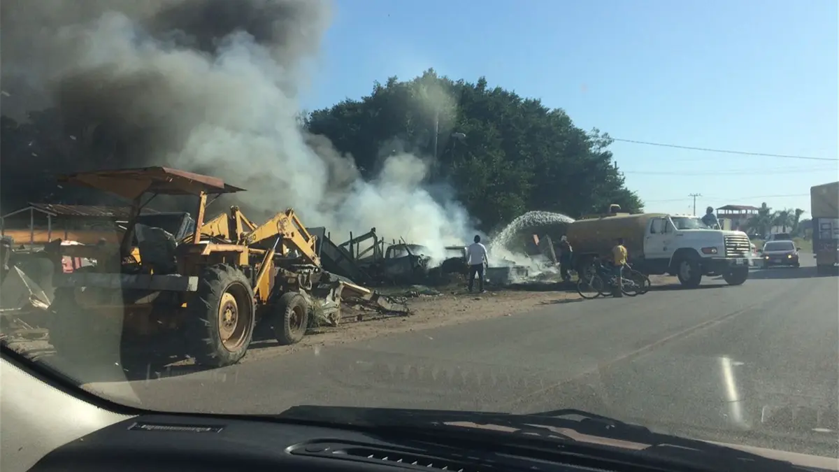 Los Mochis, Sin.- En estos momentos se está quemando un yonque sobre la carretera "la 50" al ingresar a Villa Juárez, de momento no hay presencia de bomberos y sólo una pipa está luchando contra el fuego.