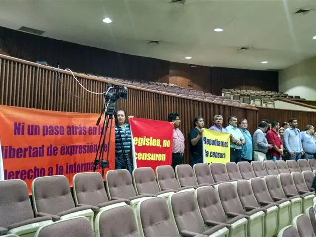 Culiacán, Sin.- Un grupo de representantes de medios de comunicación se manifestaron durante la sesión del Congreso del Estado, en contra de que se pretenda censurar o limitar el trabajo de los reporteros al interior del Palacio Legislativo.