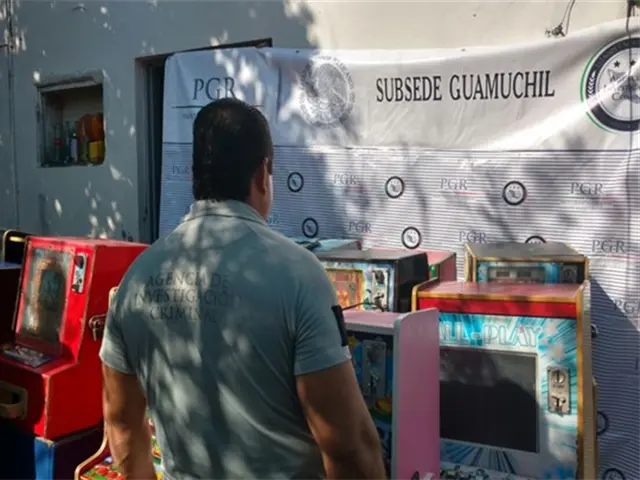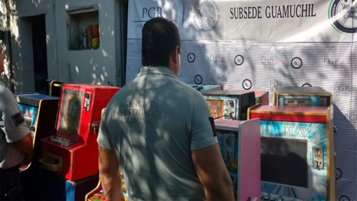 Los Mochis, Sin.- La Procuraduría General de la República (PGR), a través de su Delegación en Sinaloa, inició una carpeta de investigación contra quien o quienes resulten responsables por el delito de Violación a la Ley Federal de Juegos y Sorteos, tras un operativo realizado en distintos puntos de la ciudad de Guamúchil, Sinaloa y Municipio de Salvador Alvarado, lugar donde se aseguraron 13 máquinas tragamonedas.