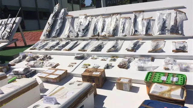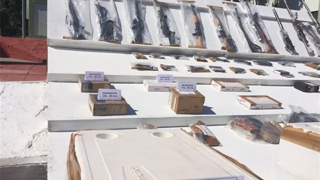 En materia de armamento, se han asegurado una ametralladora Browing, calibre .50, dos ametralladoras Browing calibre .30, tres fusiles Barret Calibre .50, 93 fusiles de asalto tipo Ak-47 y AR-15, 50 pistolas de calibres de uso exclusivo del Ejército, 2 aditamentos lanzagranadas calibre .40, 20 granadas de mano de fragmentación, 30 granadas calibre .40 y más de 80 mil cartuchos de diferentes calibres.