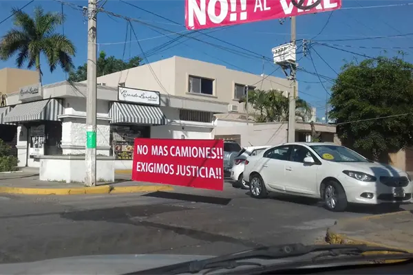 Vecinos cierran calles para exigir que ya no pasen los camiones por algunas colonias
