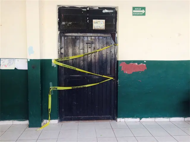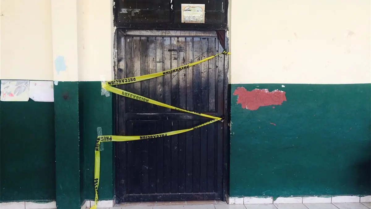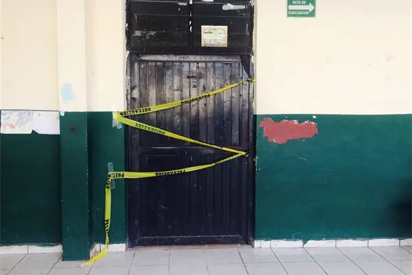 El aula permanece cerrada y como advertencia tiene una cinta amarilla que dice: “Precaución”.