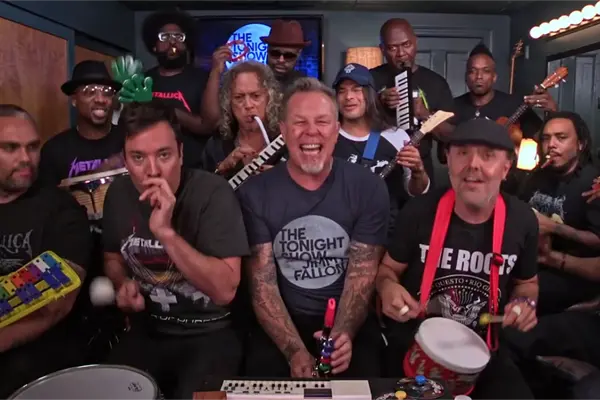 Bongos, panderetas, un xilófono y pequeñas trompetas formaron parte del divertido arreglo musical, en el cual Fallon hizo los coros al vocalista James Hetfield, mientras The Roots apoyaba con un ukelele y percusiones a Lars Ulrich, Kirk Hammett y Robert Trujillo.