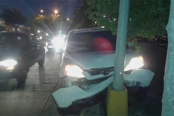 La unidad se impactó de frente primero contra un árbol y luego con un poste de alumbrado público.