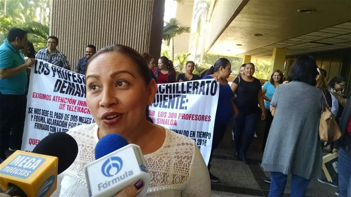 Culiacán, Sin.- La mañana de este jueves un grupo de maestros de tele bachilleratos de todo el estado se plantó en la explanada del palacio de gobierno exigiendo que se les