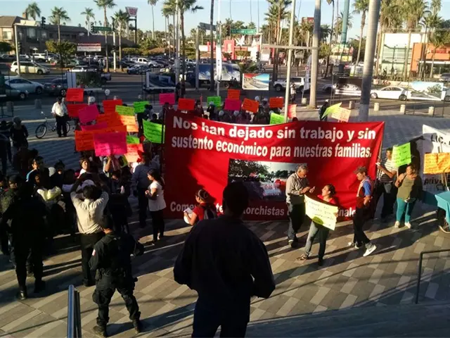 Los Mochis, Sin.- Comerciantes e integrantes del Movimiento Antorcha Campesina, además de vecinos afectados con las permutas, se manifiestan en el Teatro Ingenio de Los Mochis, previo al inicio del Tercer y Último Informe de Labores de Arturo Duarte García.