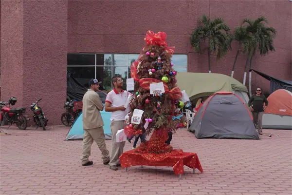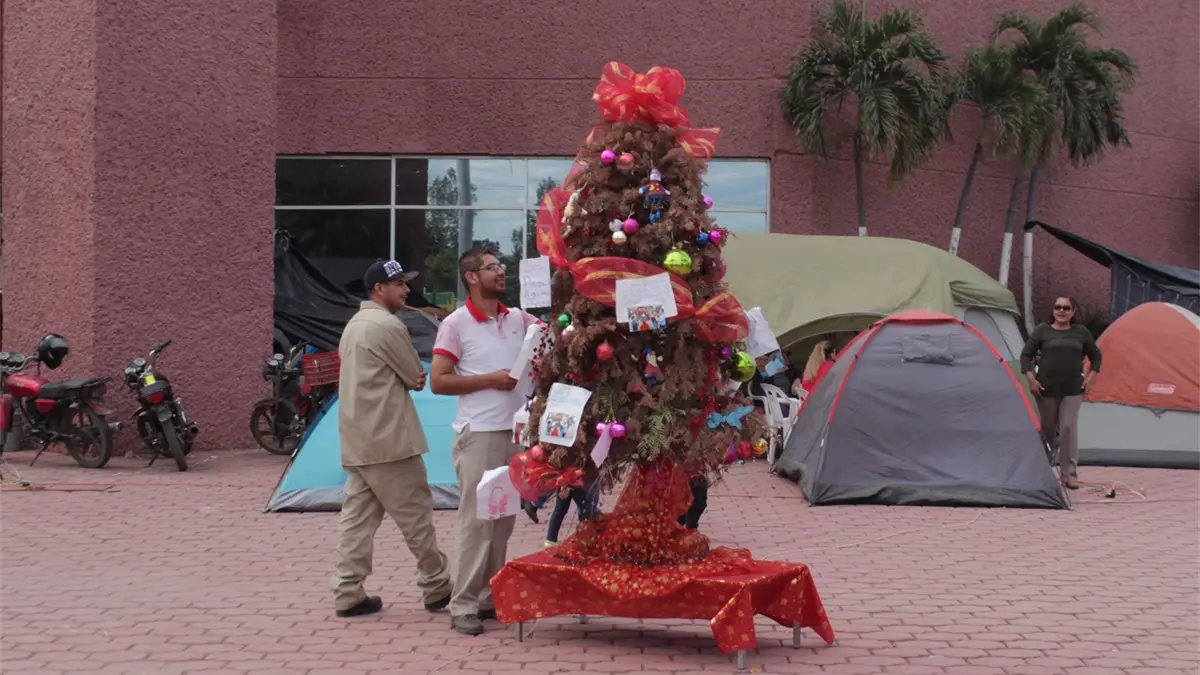 Cabe destacar que los trabajadores y sus hijos colocaron un árbol de Navidad con cartas dirigidas a Armando Leyson en el que le piden que les pague el aguinaldo para tener qué llevar a sus casas este 24 y 25 de diciembre.