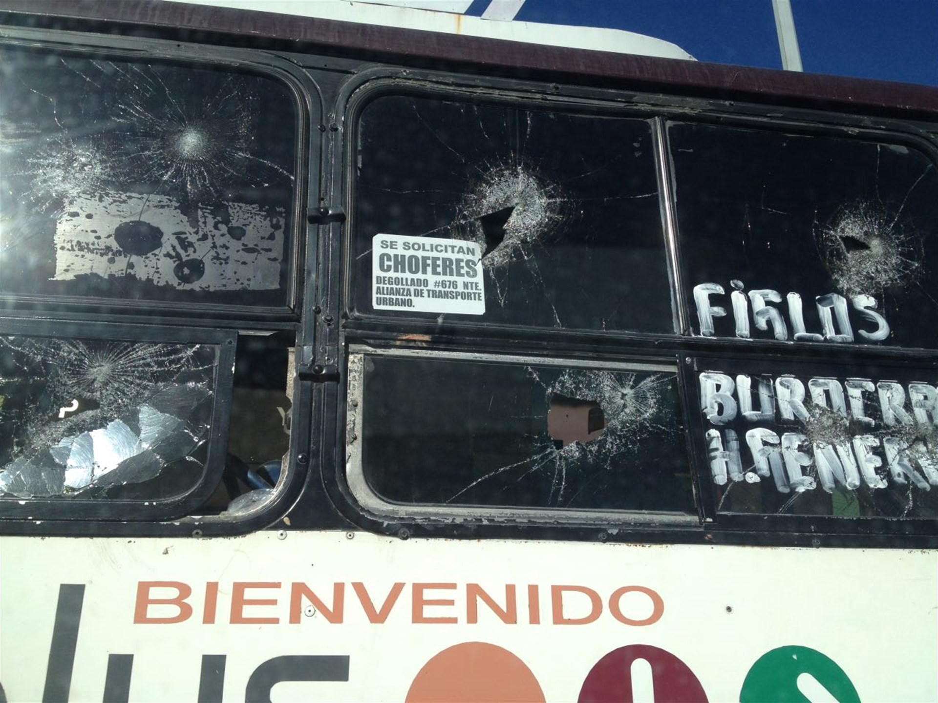 Este fin de semana fue apedreado un vehículo de transporte urbano por 3 individuos cuando se encontraba al exterior del domicilio de una de las concesionarias de la ATUSUM, al parecer la acción se debió a represalias contra la Secretaria de Trabajo por medidas tomadas contra un grupo de empleados de este gremio.