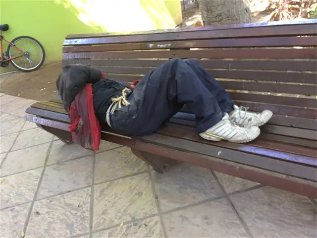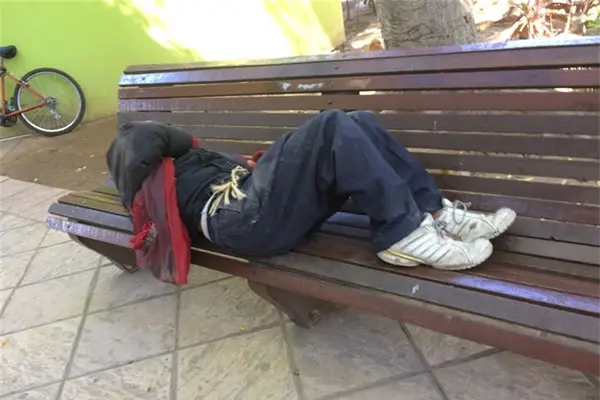 Al final, los paramédicos se limitaron a restablecer al indigente y ante la negativa de acompañarlos a recibir otro tipo de atención médica, quedó acostado sobre la banca.