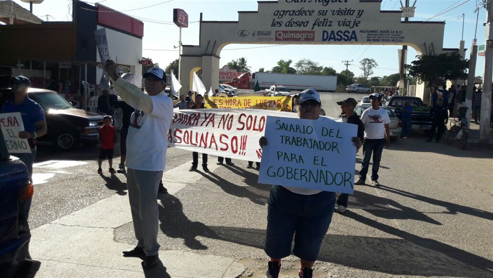 San Miguel Zapotitlán, Sin. Integrantes del Movimiento Zapatista y demás ciudadanos marchan por la calle principal de San Miguel Zapotitlan para protestar en contra del incremento a los hidrocarburos.