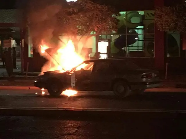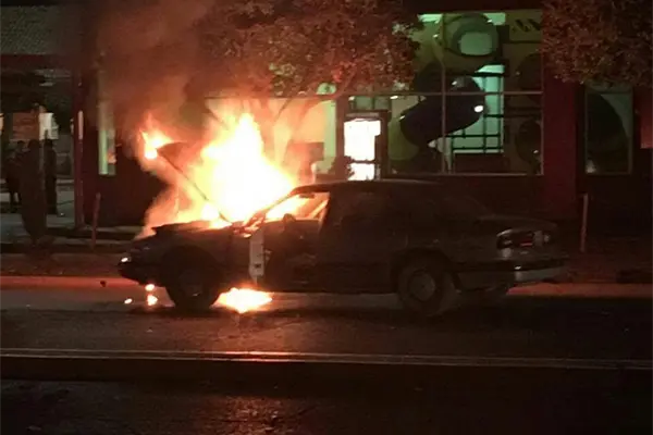 Se trata de un Chevrolet Celebrity, al parecer de color azul, que ardió en llamas justo cuando pasaba frente los fiesta las Palmas, ubicada por Rosales e Independencia, del sector Centro.