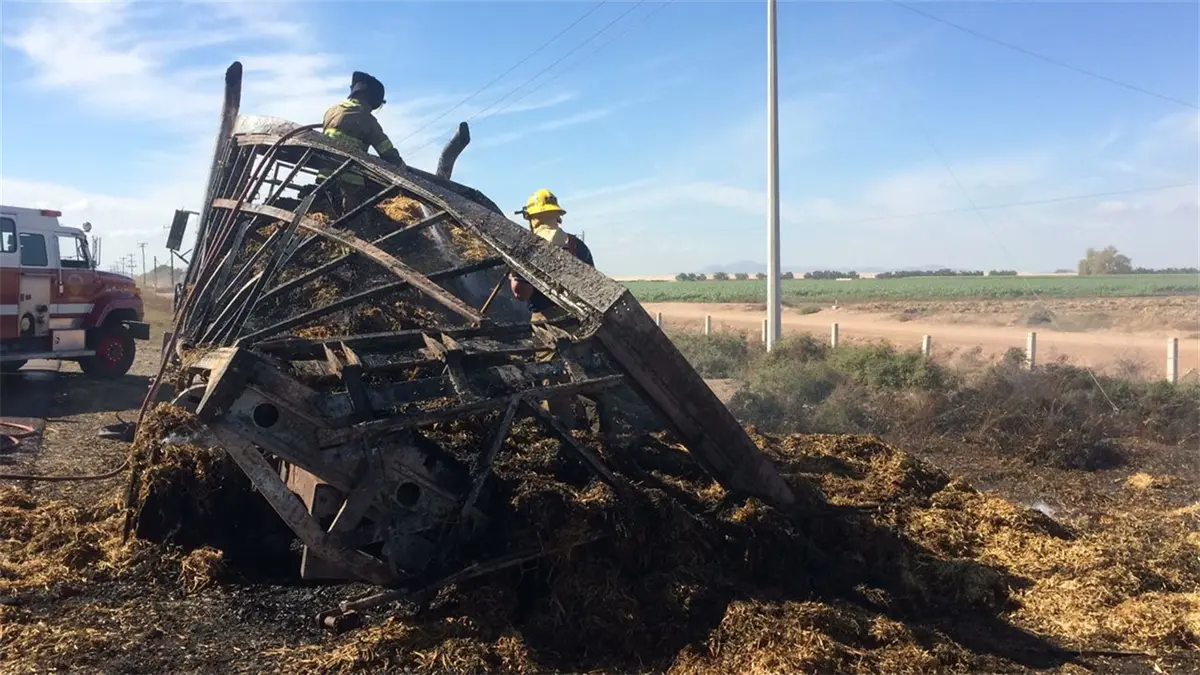 Los Mochis, Sin.- En pérdida total quedó un camión de carga lleno de pacas de paja, la tarde de este viernes, el cual circulaba por la carretera Internacional México 15, sobre el carril que va de sur a norte, a la altura de Concheros.