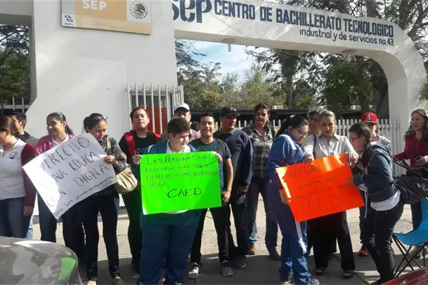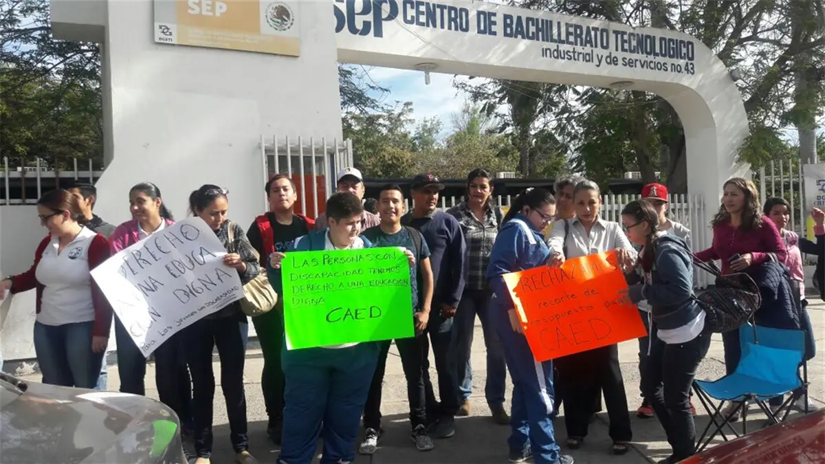 Con la medida de la SHyCP, se ordenó el despido de 3 maestras que apoyaban a 28 jóvenes con discapacidad a estudiar su bachillerato; ellos se manifiestan contra la medida.