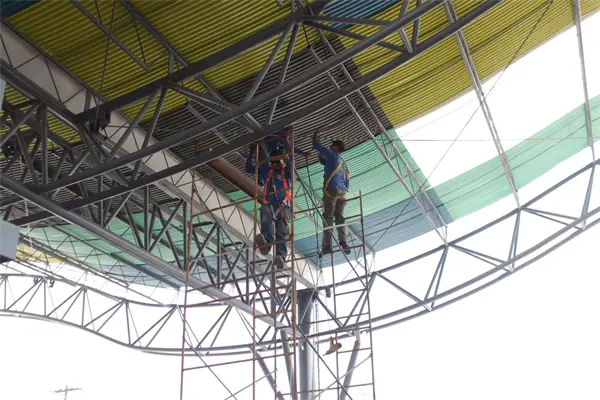 Los Mochis, Sin-. Con la finalidad de reforzar los techos del Mercado 030 personal de la empresa encargada de la construcción del mismo acudió a colocar una viga de acero en los pasillos donde se concentran los puestos de comida.