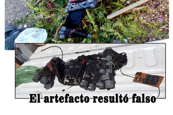Se comprobó que se trató de una broma de mal gusto, dado que se trató de un chaleco con tubos de pvc pintados y cables colocados sobre el frente del chaleco, descartando cualquier posibilidad de contar con algún elemento explosivo.