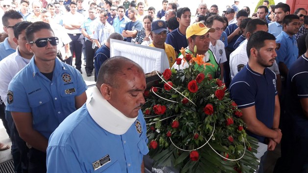 Guasave, Sin.- Perturbados por la muerte de “El Cuate”, como le llamaban, entre gritos de impotencia y consternados por su pérdida, familiares, compañeros y amigos rindieron un homenaje al joven José Miguel Sauceda Carbajal, quien falleció el pasado martes después de un accidente cuando viajaba en una unidad de Bomberos, la cual chocó contra un autobús de la línea Norte de Sinaloa.