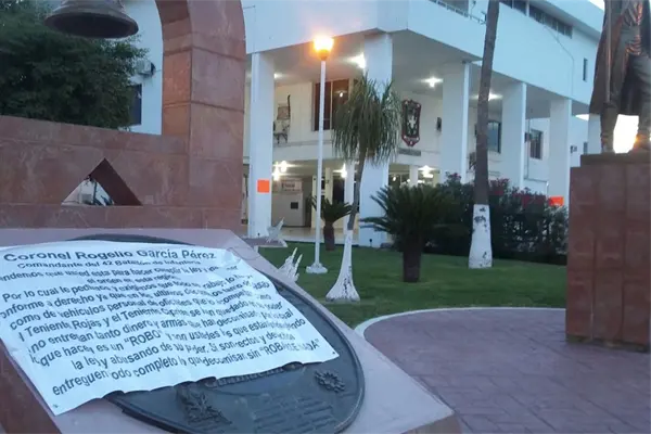 En los narcomensajes, señalan al Coronel Rogelio García Pérez, Comandante del 42 Batallón de Infantería, de poner atención sobre el paradero de lo asegurado en distintos decomisos, los cuales al parecer no son reportados.