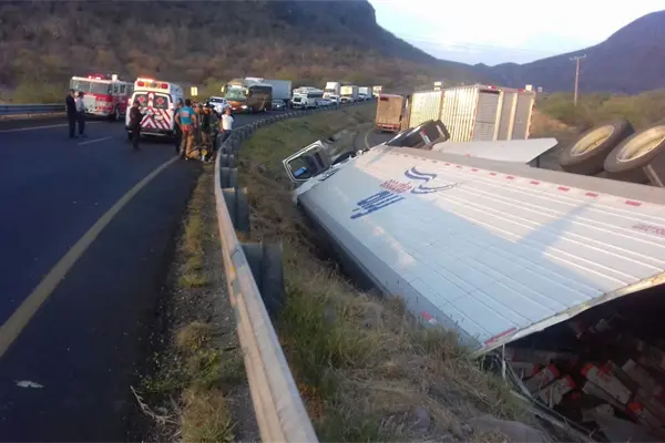 Tras el aparatoso accidente, Alejandro Borbosa, chofer del tráiler Kenworth, blanco con placas de carga federal 91-TX-6R, propiedad de la empresa “Frío Express” de Aguascalientes, terminó prensado, por lo que tuvo que acudir personal de Bomberos de El Carrizo, quienes lo rescataron con las “quijadas de la vida”.