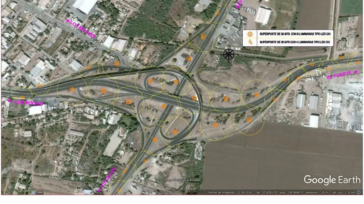 Inicia este martes instalación de luminarias en el acceso norte de Los Mochis