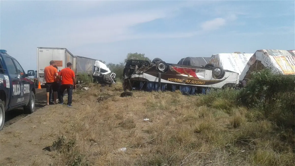 El accidente ocurrió alrededor de las 15:30 horas de hoy entre un camión de pasajeros de la línea Unidos de Sinaloa número económico 301, que cubría la ruta Culiacán-Mazatlán, el cual fue impactado por un tráiler de una empresa cervecera.