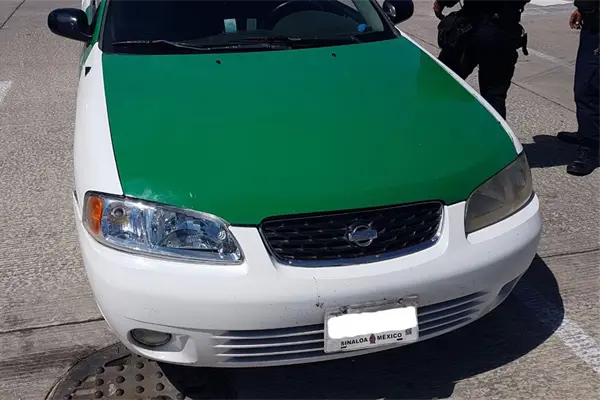 Hoy por la mañana, agentes preventivos quienes realizaban un recorrido preventivo por la zona norte de la ciudad, reciben un reporte que indicaba que en el acceso norte a la ciudad, se detectó un vehículo Nissan Sentra color blanco con franjas verdes tipo taxi, el cual cuenta con reporte de robo.