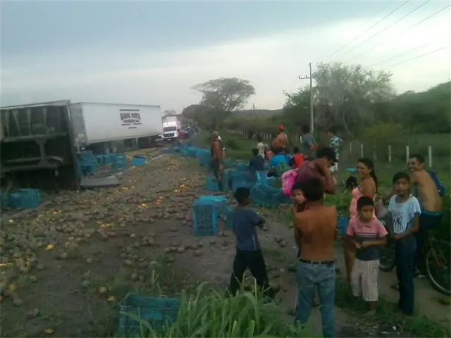 Mazatlán, Sin.- Un tráiler que transportaba toneladas de mango en el sur de Sinaloa volcó en el tramo carretero Libre Mazatlán-Tepic, provocando el cierre temporal de la vía por varias horas.