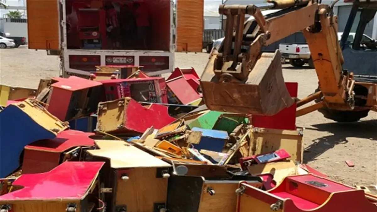 Destruyen 61 máquinas tragamonedas