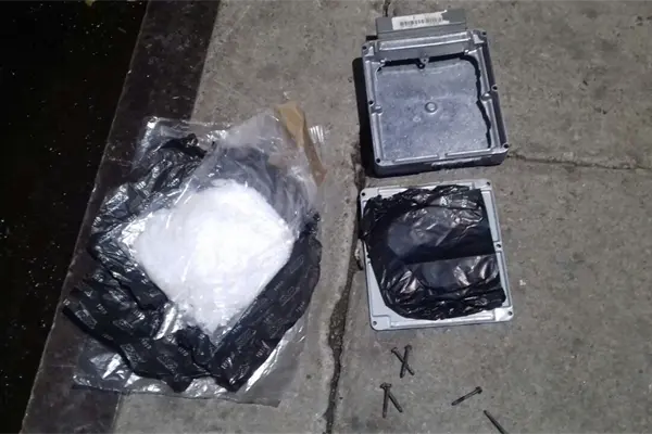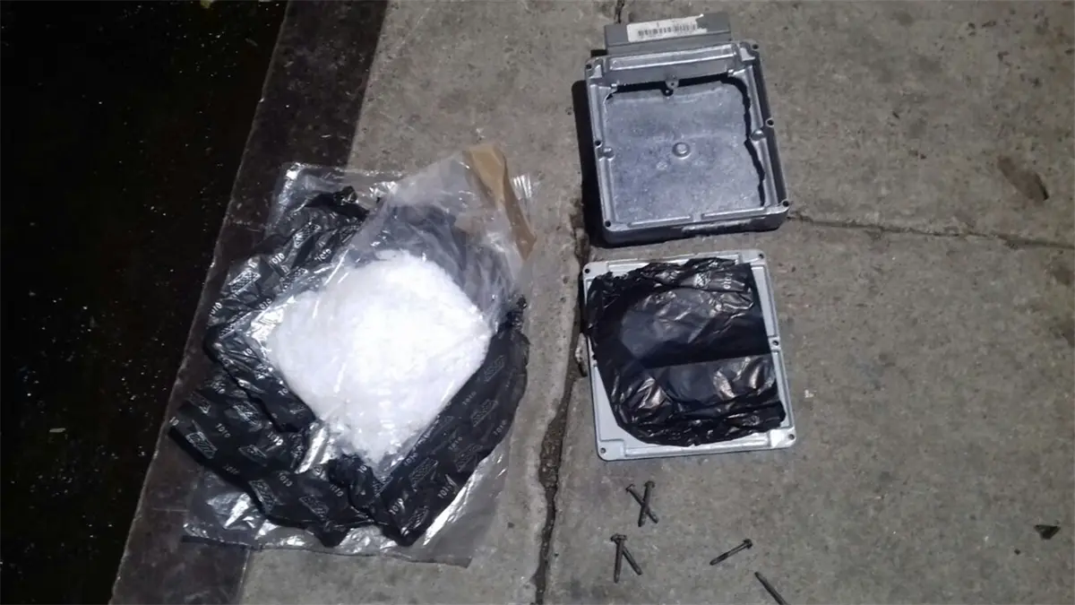Ahí los elementos militares revisaron la pesada unidad donde encontraron una caja de cartón la cual contenía una refacción, una computadora para un automóvil marca Ford, en la cual al revisar el interior, encontraron la droga conocida como cristal, misma que dio un peso de 205 gramos.