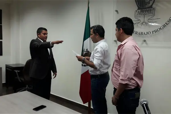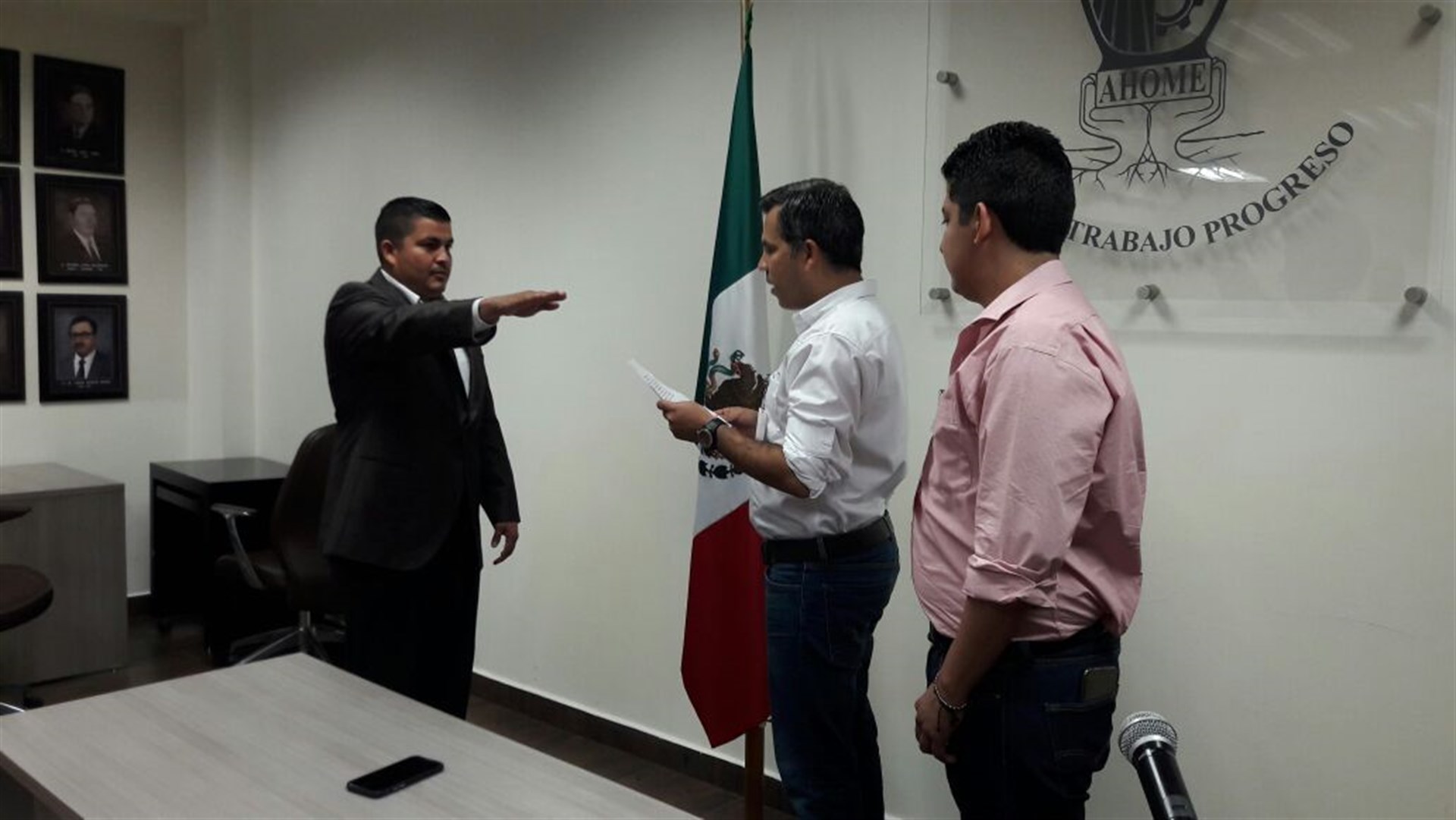 Fue el secretario del Ayuntamiento Juan Antonio Garibaldi Hernández quien le tomó la protesta y lo instó a trabajar en beneficio de los ahomenses.