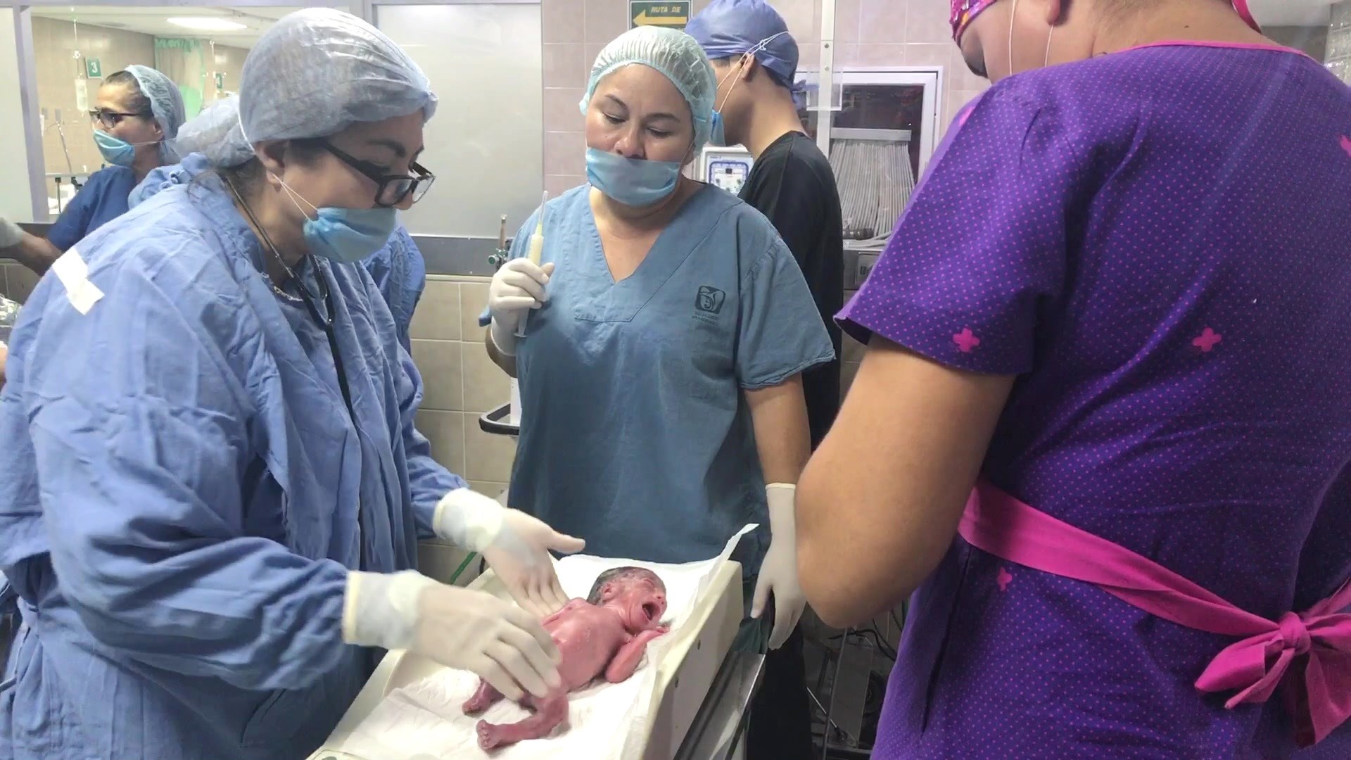 Por tratarse de un parto múltiple, se requirió de la intervención de un equipo multidisciplinario de más de 30 personas, integrado por especialistas en ginecología, obstetricia, perinatología, pediatría, anestesiólogo, intensivistas, enfermeras, residentes y personal del servicio, quienes brindaron atención tanto a la madre como a los recién nacidos.